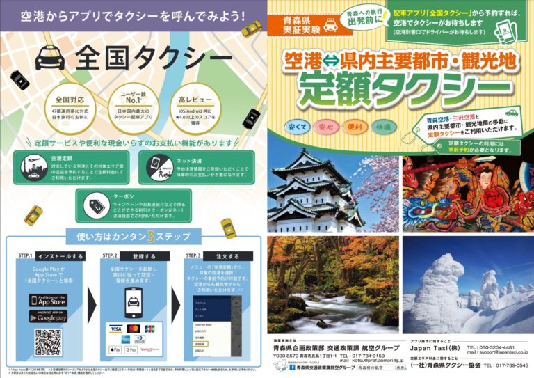 Fixed-rate taxis are a convenient option from Aomori Airport.